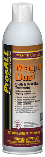 ProsALL® MagnaDust™ is formulated to attract dust and fine particles. Restores the original shine to all surfaces without wax or silicone. Cloths treated with this lemon-oil emulsion enhance fine wood furniture. Leaves no residue.