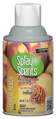 Champion Sprayon® SprayScents® completely eliminate unpleasant odors and leave a clean, fresh scent in the air. Contains Ordenone™, a deodorizing ingredient that is an effective odor eliminator. The measured spray deodorizes up to 6,000 cubic feet. Universal spray tip - our metered air fresheners are manufactured with a universal actuator tip and will fit most metered-aerosol dispensers.