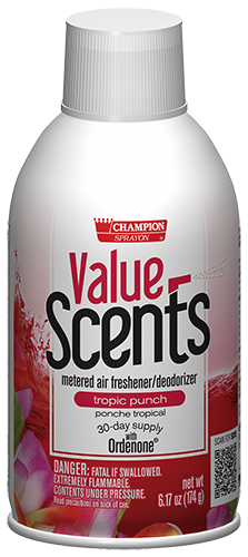 Champion Sprayon® ValueScents completely eliminate unpleasant odors and leave a clean, fresh scent in the air. Contains Ordenone®, a deodorizing ingredient that is an effective odor eliminator. The measured spray deodorizes up to 6,000 cubic feet. Universal spray tip.