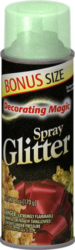 Decorating Magic® Spray Glitter adds sparkle to special-occasion and seasonal items. Convenient one-step spray includes both the adhesive and glitter. The superior adhesion is effective even on irregular surfaces like wreaths, baskets, fresh and dried floral arrangements.